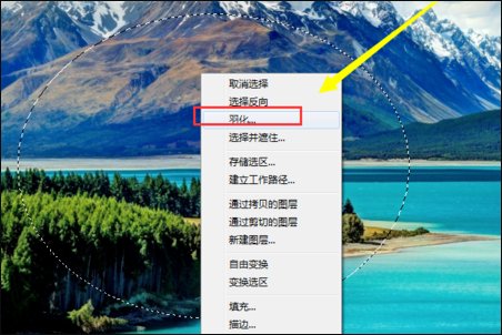 2、然后鼠标在画布中,右键选择羽化。
