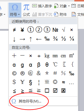 3、点击符号中“其他符号(M)”