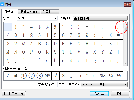 4、选择第一排最后一个:“·”。